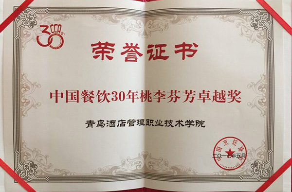 我院喜获“中国餐饮30年桃李芬芳卓越奖”和“中国餐饮30年杰出人物奖”