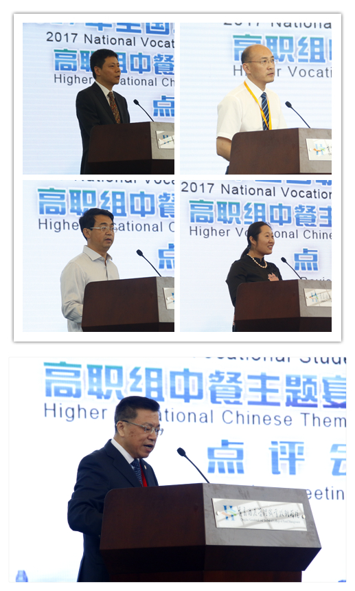 闭幕式前,中餐宴会接待方案创意设计组组长、天津商业大学李志刚教授,摆台设计与现场互评组组长、无锡城市职业技术学院瞿立新教授,摆台操作与餐饮服务组组长、淄博职业学院张波教授,英语组组长、北京第二外国语学院王俞教授分别就各环节进行点评并提出指导意见。大赛专家组组长、浙江大学邹益民教授对赛项做总体点评。