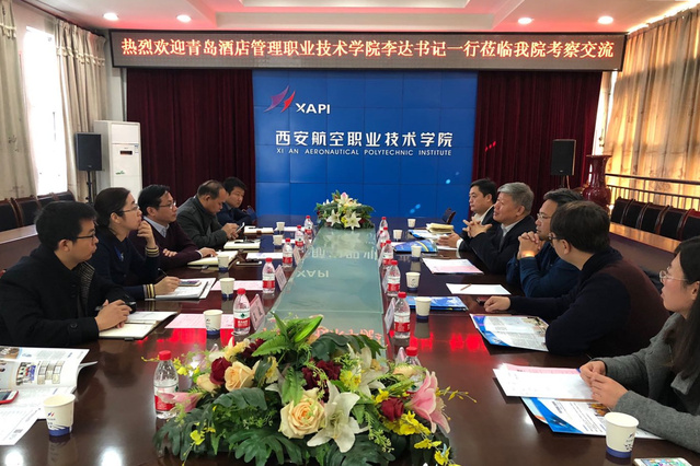 本网讯 (旅游与酒店管理学院) 126-8日,学院党委书记李达、副院长商士海、副院长刁洪斌、总务处处长路永、空中乘务专业负责人刘真及专业教师鹿彦等一行6人赴西安航空职业技术学院、成都航空职业技术学院,就空中乘务专业办学思路及经验、实训室建设、实践教学模式和人才培养模式等方面进行考察交流。