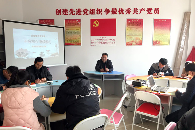 本网讯 (行政三支部 武静静) 为深入学习宣传贯彻党的十九大精神,按照学院《学习宣传贯彻党的十九大精神工作方案》部署要求,12月29日上午,行政三支部在党员活动室召开组织生活会,党委委员、副院长商士海以《不忘初心,继续前行》为题,为行政三支部全体党员上了一堂生动的专题党课。