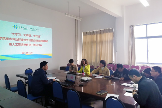 本网讯(教务处)为贯彻落实学院党委在全院开展“大学习、大调研、大改进”的工作部署,进一步聚焦问题、明确重点、把握方向,4月10日,教务处组织召开《重点专业群建设主动服务新旧动能转换重大工程专题调研》工作研讨会。酒店类专业群、旅游类专业群、烹饪类专业群、会展类专业群、商贸类专业群和教务处有关人员参加研讨。