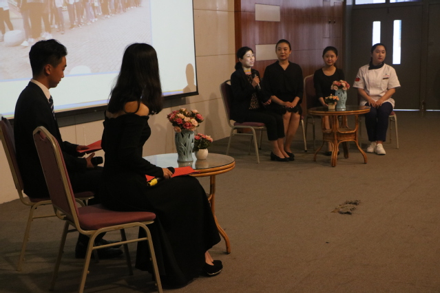 旅游与酒店管理学院教师郭贵荣、烹饪学院教师任玉洁和团委教师吴春雷分别带领新闻媒体中心志愿者、城市服务驿站及校内志愿者代表,共同回顾峰会期间志愿服务中难忘的瞬间,引发在场志愿者们的集体回忆。