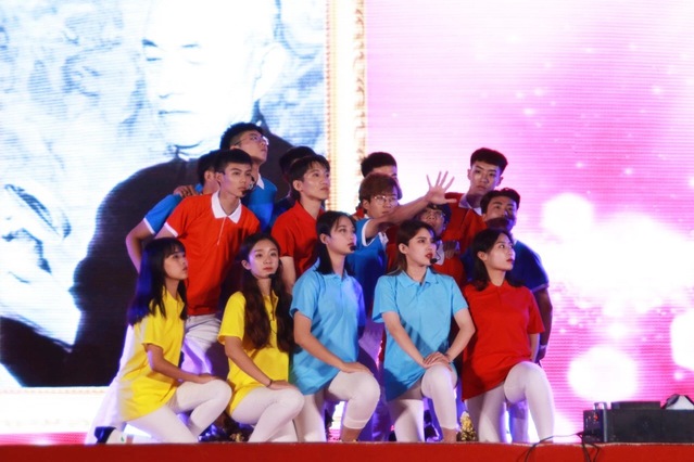 在青春舞蹈《五月的鲜花》中晚会拉开序幕。青年教官用歌声讲述自己的军旅生涯,记录在军营度过的别样青春;音诗画《归来》带大家重温革命先辈们为祖国建设前赴后继,抛头颅洒热血的革命奉献精神;全体新生辅导员用一曲改编版《成都》,抒发对学院深深的热爱与眷恋之情。整场晚会汇集歌曲,舞蹈,走秀,打击乐等多种表演形式,教师代表、承训官兵代表、新老同学同台表演,共同纪念改革开放四十周年,为祖国送上诚挚的祝福。