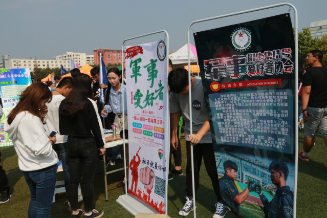 本网讯(团委 张素愚)9月29日下午,一年一度的学生社团纳新活动在体育场举行,我院90余个学生社团齐齐亮相、各显其能、招贤纳士,副院长刁洪斌出席纳新活动并进行工作指导。