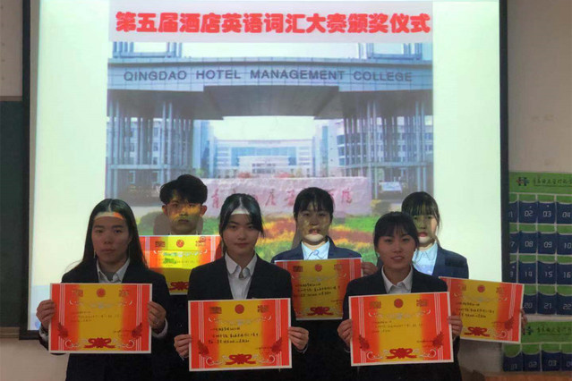 在酒店英语微电影大赛中,2016级酒店管理4班获得大三组别第一名,2018级酒店管理酒店专本贯通班获得大一组第一名。在酒店英语词汇大赛中,2018级酒店管理专业4班取得一等奖,7班和8班获得二等奖,6班、9班和10班获得三等奖,其中2018级酒店管理6班尚丰英取得95分的好成绩。