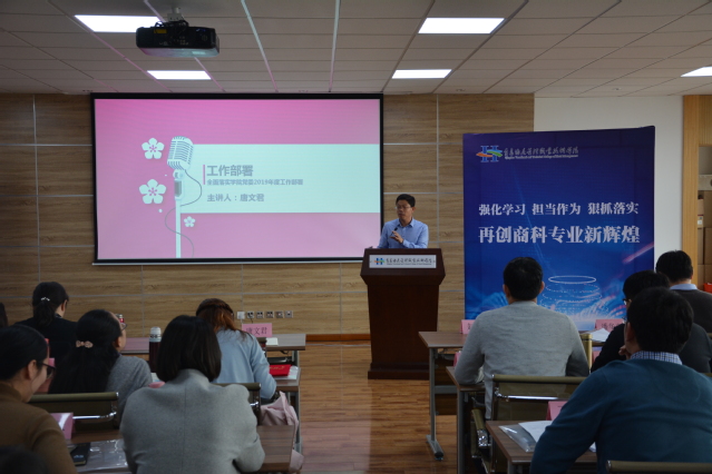 副院长赵琪针对工商管理学院2019年教学重点项目进行了交流说明。黄蕊、牛俊杰等6位老师分别从教学资源库建设、职业技能大赛、资源共享课程建设、青年教师成长等方面进行了交流发言。