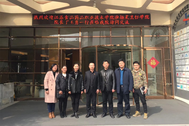 本网讯(烹饪学院 李文武)3月1日,江苏食品药品职业技术学院淮扬菜烹饪学院院长丁玉勇一行5人到我院交流访问,考察学习我院人才培养、专业建设、师资建设、校内实训和校外实习等方面相关经验,烹饪学院院长王建明、党总支书记石增业、副院长王志兴及相关专业负责人与来访客人进行了座谈交流和现场考察参观。