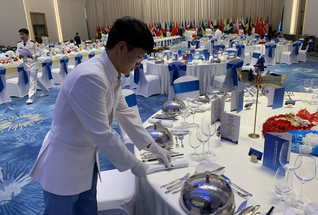 服务本次重大活动的同学历经层层选拔,具备良好的高级别宴会服务能力、英语能力和团队协作能力。参加服务的同学们接受了为期20余天的集中授课、情境预演、实景演练等形式的多轮次高级别服务专题培训。我院学生以热情、职业、优质、高效的服务赢得了现场外宾的好评,纷纷对服务学生表达谢意。