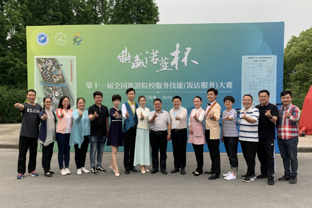 本网讯(旅游与酒店管理学院 王翔)5月16日至19日,2019年“鼎盛诺蓝杯”第十一届全国旅游院校服务技能 (饭店服务)大赛在浙江旅游职业技术学院举行,学院学子张朝辉、宋晓东、万晓彤分别获得中餐宴会摆台、西餐宴会摆台、客房服务赛项金牌,孙明浩获得鸡尾酒调制赛项银牌,我院参赛团队以总分排名全国第三的优势获得高职院校组团体奖。