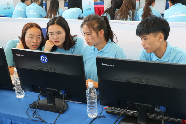 5月25日开幕的2019年全国职业院校技能大赛高职组“市场营销技能”赛项正在我院如火如荼地进行,参赛选手沉着冷静、思维敏捷,志愿者主动服务、积极作为,工作人员尽职尽责、严谨细致,赛场秩序井然,大赛正在顺利进行。图片来源:新媒体工作室