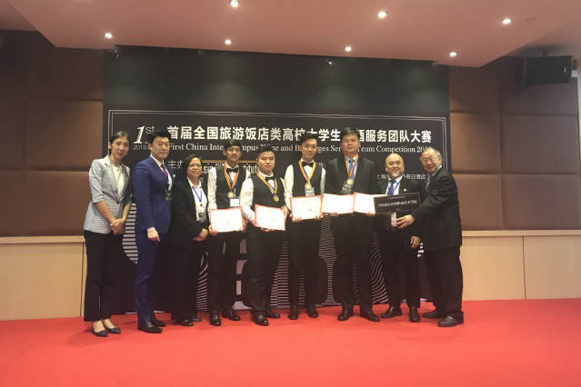 本网讯(旅游与酒店管理学院 程彬)6月16日,由亚洲葡萄酒学会主办的2019首届全国旅游饭店类高校大学生侍酒服务团队大赛决赛在上海举行,2017级酒店管理专业于德鋆、王子岙、石万泽等3名同学组队参赛,由旅游与酒店管理学院程彬担任指导教师,最终荣获团体亚军和最佳餐厅服务奖,三名同学在酒水知识、葡萄酒盲品、白葡萄酒服务等分赛项中荣获团体奖5项,个人奖6项,于德鋆获最佳个人表现奖。