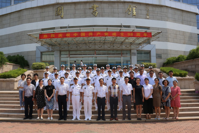 会后,海军潜艇学院与会同志参观我院基层党建文化长廊,全体与会人员在图书馆前合影留念。
