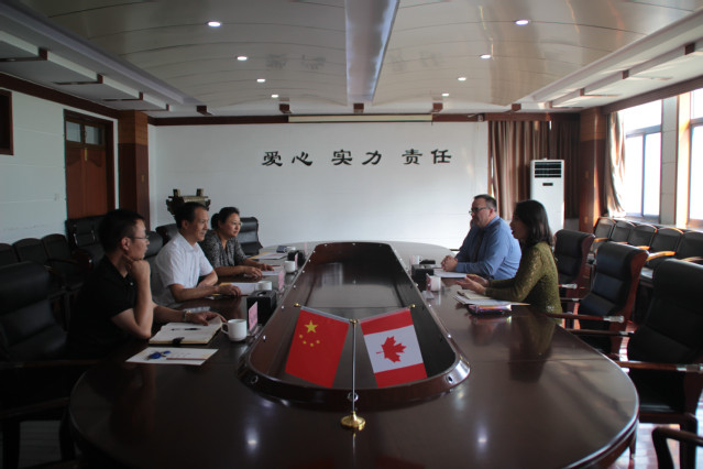 本网讯(国际交流与合作处 邵常恩)9月5日下午,加拿大卡纳多学院(Canadore College)副院长理查德·皮特斯(Richard Peters)、中国区主任王芳一行来到我院访问交流。学院副院长王建宝,国际交流与合作处处长周莉,烹饪学院院长王建明等在办公楼二楼会议室热情接待了来访客人。