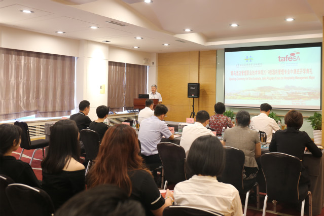 本网讯(旅游与酒店管理学院 国际交流与合作处)9月20日上午,2019级酒店管理专业中澳班开学典礼在旅游与酒店管理学院实训中心多功能厅举行。