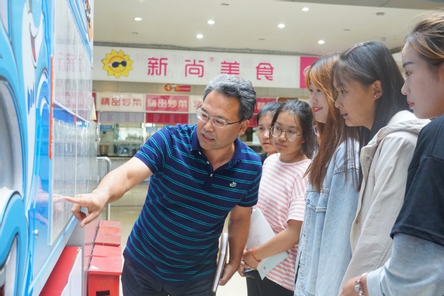 本网讯(工商管理学院 徐彤彤)9月27日下午,副院长商士海带领联系班级——2019级财务管理D02班走进西餐厅食堂,开展“突访式检查”,现场向同学们介绍学院后勤在师生安全用餐方面的保障措施。工商管理学院党总支书记曲萌、辅导员徐彤彤参加活动。