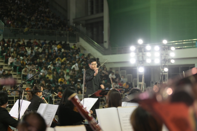 本网讯(党委宣传部 团委)10月29日,由中共青岛市委宣传部、中共青岛市委教育工作委员会组织开展的2019年高雅音乐进校园活动在学院举行,青岛市歌舞剧院交响乐团多位艺术家受邀走进我院,为师生们奉献一场专场音乐会。青岛市委宣传部文艺处副处长于颖,学院纪委书记姜玲玲、副院长宫恩龙与近两千名师生共同观看了现场演出。
