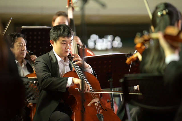 本场音乐会分为红色乐章、电影原声和世界名曲三个部分,演奏了《北京喜讯到边塞》《红色娘子军组曲》《瑶族舞曲》《对花》《音乐之声组曲》《飞天红猪侠》《蝙蝠序曲》《埃及进行曲》《匈牙利舞曲第五号》《蓝色多瑙河》《拉德斯基进行曲》等11个经典曲目,引起了师生的强烈共鸣,学院师生由衷赞叹,这真是一场高水准的视听盛宴。