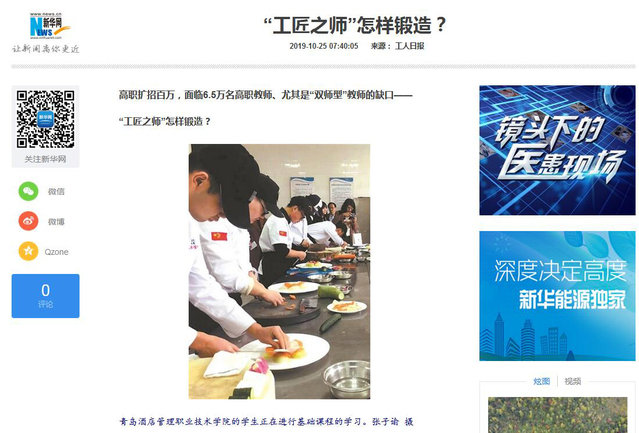 本网讯(党委宣传部)连日来,《光明日报》《工人日报》《人民政协报》《中国教育报》、人民网、新华网、山东教育电视台等媒体持续报道学院高水平双师队伍建设经验,齐鲁网、大众网、人民网和新华网各地方频道、中国教育新闻网给予转发报道。