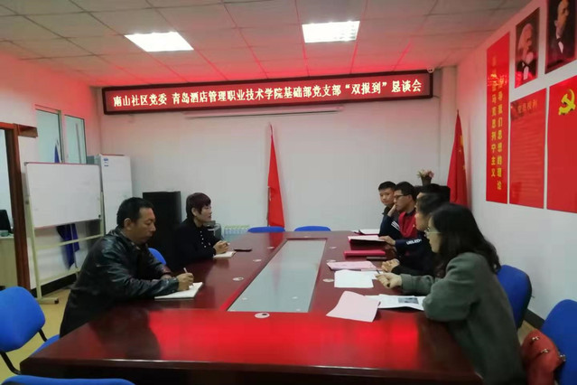 11月13日上午,基础部党支部赴李村街道南山社区开展“双报到”活动。支部书记董瑞虎与南山社区党委书记王伟围绕新形势下有效开展党建工作进行了深入交流,就进一步做好党建共创、社区共建、社区服务、资源共享等交换了意见,为以后双方更好地开展党建共建活动打下坚实的基础。