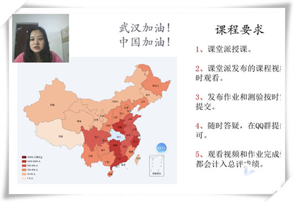 授课教师认真落实课程思政要求,纷纷以全民众志成城、共克时艰的抗疫精神为教材,以生命守卫生命、最美逆行者的感人事迹为案例,号召同学们尊重自然、敬畏生命,身在隔离、心向世界,致敬英雄、牢记担当。同学们学习踊跃、积极配合,希望早日回到美丽的校园、回到安静的教室。