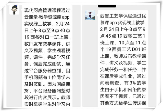文旅学院、酒店管理学院等二级学院创新工作形式,举行线上开学典礼,强化思想引领和生命教育,希望同学们敬畏生命、心怀感恩,在家隔离不忘学习,要充分利用网络进行知识能力提升,坚定信心打赢这场疫情防控阻击战。