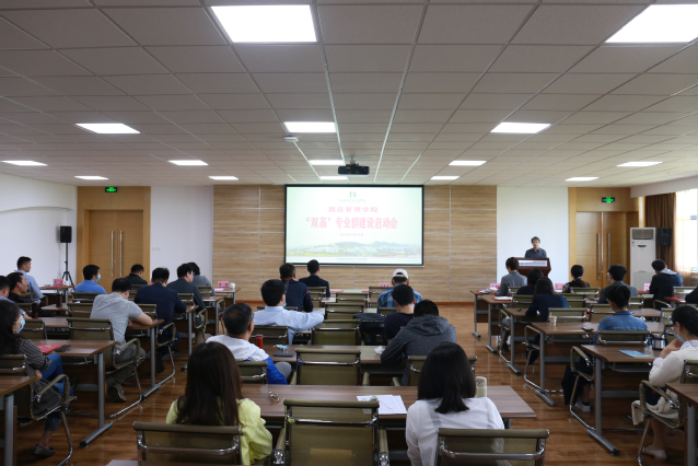 组织人事处、宣传统战部、国际交流与合作处、教务处、质量控制与绩效考核办公室、财务处、科研发展处、教育信息中心等部门负责人和酒店管理学院全体教师参加会议。