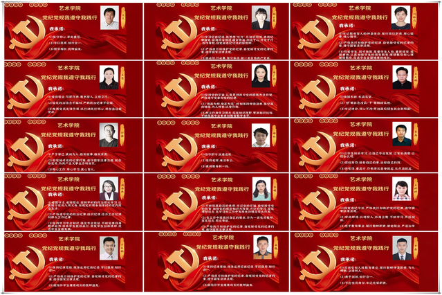 每位党员根据自身情况和岗位实际,发表了践诺宣言,艺术学院将每位党员的践诺宣言制作成电子海报,在微信平台进行集中展示和推送,自觉接受监督。