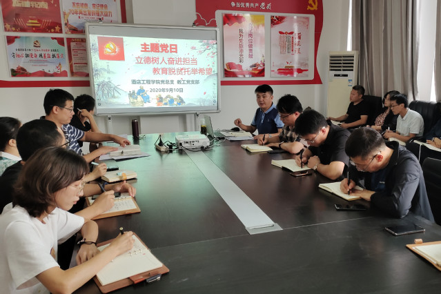 本网讯(酒店工程学院 娄帅)9月10日下午,酒店工程学院党总支举办了“立德树人奋进担当,教育脱贫托举希望”主题党日活动,庆祝第36个教师节。