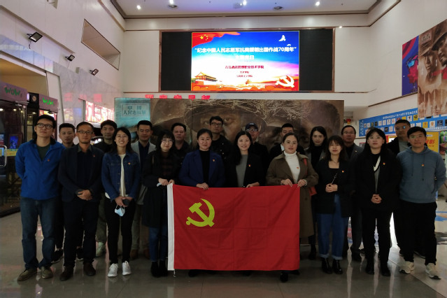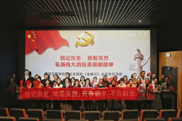 本网讯(宣传统战部)日前,为加强基层党组织建设,酒店工程学院、艺术学院、马克思主义学院等单位通过主题党日等形式组织党员同志们观看影片《金刚川》,抒发对祖国的满腔热爱和中国人民志愿军的诚挚敬意。
