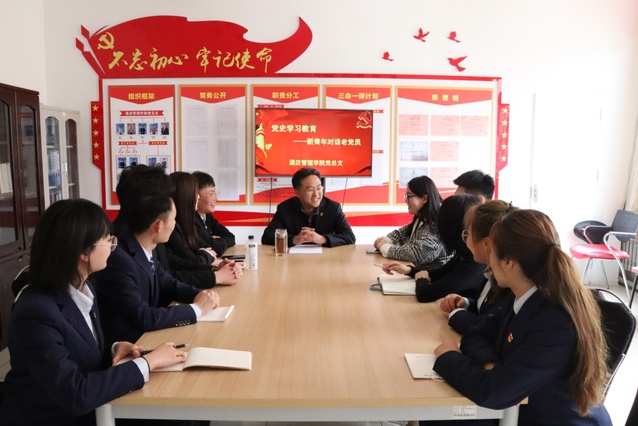 3月29日上午,一场特殊的对话在酒店管理学院党员活动室上演,学院10名“00后”学生党员对话“70后”老党员——酒店管理学院院长王昌玉。王昌玉从自己的入党经历出发,引导学生以学修身、以学益智,深刻领会新时代党的新思想、新理论,永葆一名共产党员思想的先进性,用实际行动践行共产党员的铮铮誓言。本学期,酒店管理学院青年学生还将陆续对话20余名10年以上党龄的老党员。