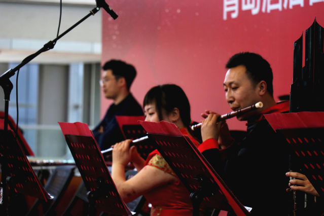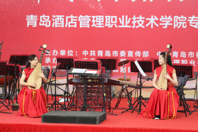 本网讯(党委宣传统战部 团委)5月26日下午,由中共青岛市委宣传部、中共青岛市委教育工委主办的青岛市高雅音乐进校园——青岛市歌舞剧院民族乐团“风华国韵”民族音乐会在学院体育馆举行,1200余名师生共同欣赏了这场音乐盛宴。