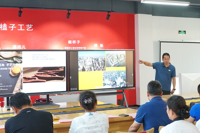 活动中,青岛大学美术学院副院长、青岛市手工艺协会执行会长侍锦教授带来《文化遗产与设计教育》主题讲座,讲座以文化遗产与设计教育为主题,综合阐述了文化遗产的价值,文化遗产的保护和发展、设计教育所面对的问题和解决路径及面对文化遗产应有的态度和责任。青岛市非物质文化遗产代表性传承人王丕文讲解并展示了月饼榼子的制作工艺。学院烹饪学院教师张桂凤带领嘉宾用月饼榼子现场制作月饼。