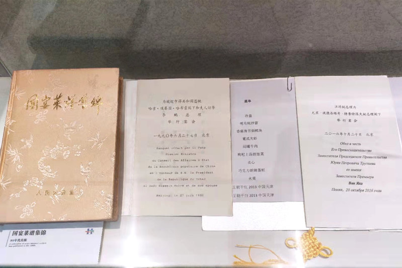 “华韵食卷”按照食单文化发展脉络,以卷轴形式展示了从夏朝至今四千多年中国食单文化的发展历程,选取各个朝代具有典型饮食文化韵味的名宴食单,展示中国宴席菜单的演变、八大菜系的风味流派特点,彰显了中华饮食文化多彩风韵。“华韵食卷”下方设立专柜,陈列展示了新中国成立以来国家领导人宴请外宾菜单实物、全国各五星级酒店宴会菜单和餐饮百年老店传统菜单,充分展示了烹饪学院的专业文化特色。