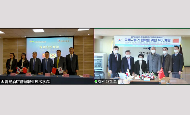 随后,双方就2022年彗田大学中餐专业学期制来华、韩餐专业交流、中韩饮食文化推广等问题进行深入商讨。结合“双高计划”建设目标,学院将引进韩国彗田大学韩餐专业课程,丰富烹饪教学内容,为学生学习提供多样化支持,推动烹饪职业教育国际化、多元化发展,实现互学互鉴和共同发展。