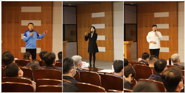 会上,会计学院教师杨晓彤进行了“示范课堂”教学节段展示,烹饪学院教师陈鹏、基础部教师王劭铭进行了“四说”活动成果展示。