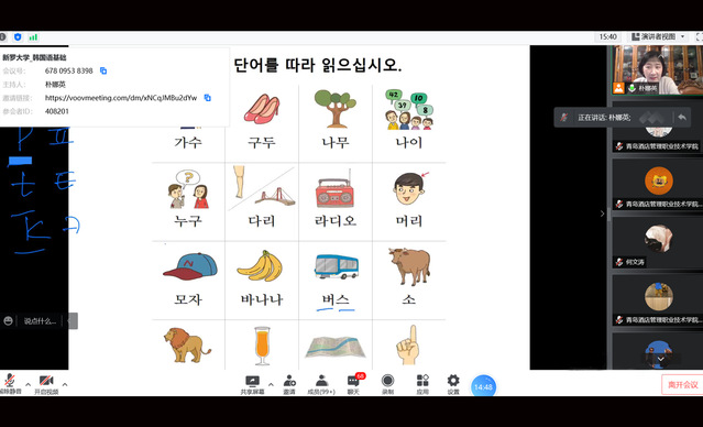该项目由韩国新罗大学高级韩语教授朴娜英主讲,内容围绕韩语发音、韩文构造、韩语日常词汇以及韩国文化解读,注重拓展学生第二外语学习载体。项目为期一学期,学生修满全部课程即可获得由韩国新罗大学颁发的课程结业证书。