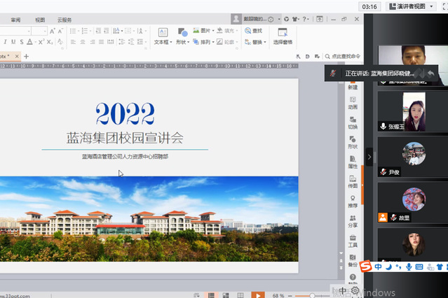 本网讯(酒店管理学院 王志飞)4月21日下午,酒店管理学院举行“春风送岗 职场起航”2022年酒店管理类企业专场线上招聘会,2022届毕业生线上参加招聘会。