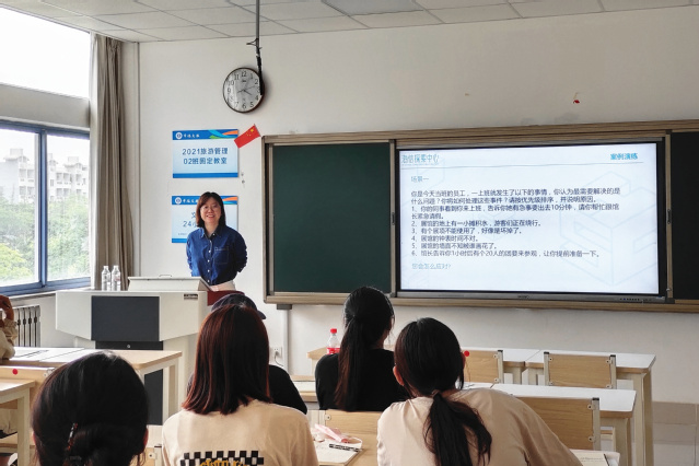 文旅学院与青岛海信探索中心合作组建研学基地现代学徒制班,基于双方共同制定的现代学徒制混合式教学计划,自6月9日起,企业导师每周到校,共进行为期四周的授课,将研学基地企业中的顾客服务、接待管理、品牌管理、二次销售、课程开发、讲解服务、地面推广等内容前置教学。通过“产教融合、一课双师”的培养模式,在充分了解行业发展现状和具体职业能力要求的基础上,将企业员工培训课程作为模块课程纳入教学培养计划,引入行业标准,深化课程改革。