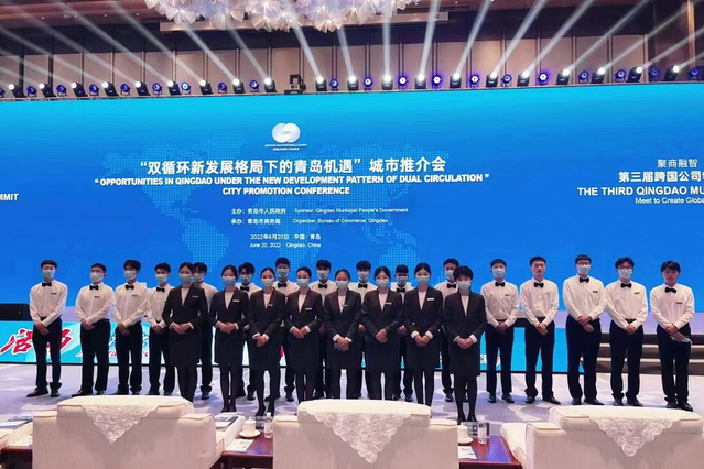 本网讯(酒店管理学院 高晴)6月19日至21日,第三届跨国公司领导人青岛峰会在青岛成功举行,酒店管理学院“金海豚志愿者”圆满完成服务中、外方企业参会贵宾的任务,获得一致好评。
