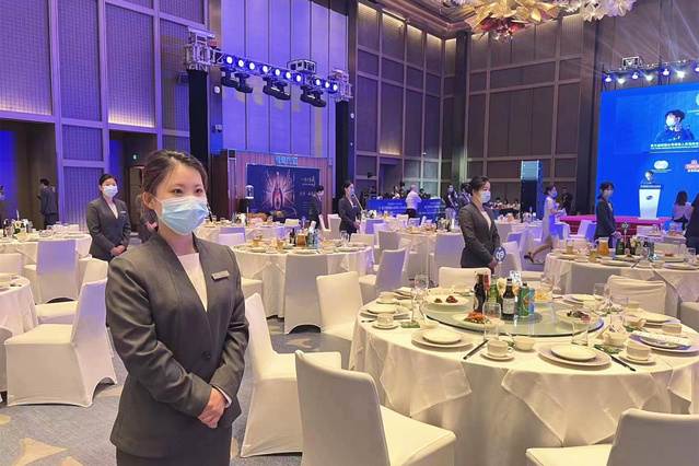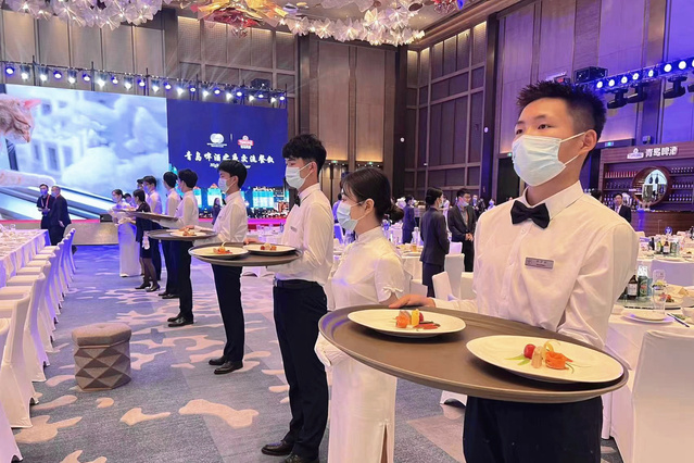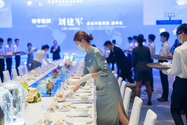通过3天集中标准化培训,90名“金海豚志愿者”带着真挚的微笑和饱满的热情走上岗位。志愿者们服务于峰会的会议、宴会、前厅、客房等环节,熟练布置各种会议台型,流畅地摆台和传菜,细心整理一间间客房,提供周到的人性化服务……志愿者们专业的素养和优质的服务赢得了现场宾客的高度认可。金海豚志愿者们纷纷表示,此次志愿服务经历令人自豪难忘,既拓宽了国际视野,又考验了专业能力,今后将进一步弘扬“奉献、友爱、互助、进步”的志愿服务精神,磨炼技能本领,提升专业水平,让青春在志愿服务中闪光。