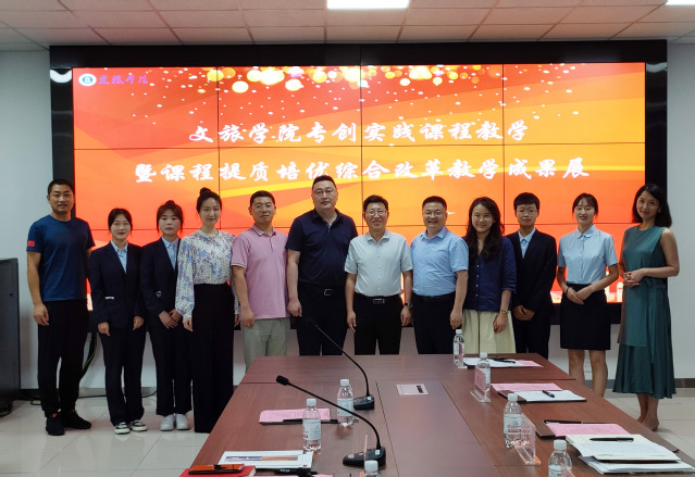 教务处处长于进亮对学生路演作品进行了点评;文旅学院院长石媚山汇报了专创实践课程教学暨课程提质培优综合改革教学情况;教师代表柯任泰展进行教学改革经验分享。