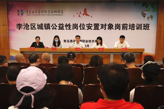 根据山东省、青岛市关于做好城乡公益性岗位安置对象岗前培训工作的通知要求,2022年李沧区统筹设置疫情防控、劳动保障、应急管理、综合治理、城市管理、卫生健康、文化服务等社区综合服务岗。为切实提高安置对象岗位适应能力和岗位专业技能,李沧区委托签约培训机构面向安置对象分批次开展通用知识和专业技能培训。学校承担李沧区东部片区九水街道、世园街道、浮山路街道3个街道的公益性岗位安置对象岗前培训工作。接到承训任务后,继续教育学院第一时间组建项目管理服务团队,调研街道和社区培训需求,设计出李沧区区情与发展、职业道德、疫情防控、急救知识、文明礼仪、劳动精神、安全防护、手机APP应用等培训模块,着力提升安置对象的岗位适应性和综合能力。