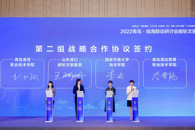 本网讯(酒店管理学院 崔永聪)8月15日,由山东省政府主办,青岛市政府、山东省交通运输厅、山东省港口集团承办的“2022青岛陆海联动研讨会”在青岛星光岛会议中心举行,大会同期举办了山东邮轮文旅分论坛。学校副院长于宏刚参加活动。