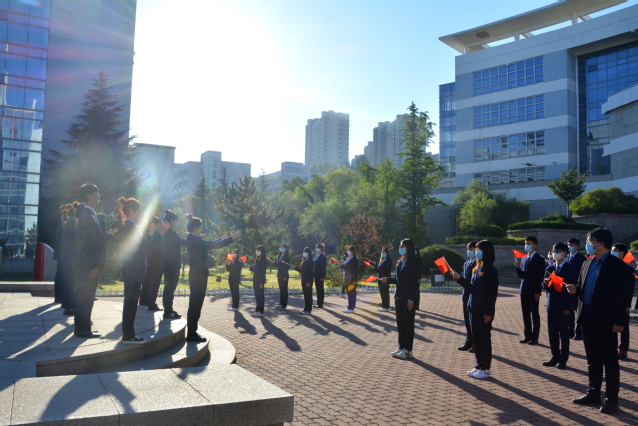 9月26日清晨,工商管理学院学生党支部举行了一场别开生面的“云上”升旗仪式,组织1300余名学生在线观看。随着雄壮激昂的国歌响起,鲜艳的五星红旗在朝阳下冉冉升起,现场、教室内、宿舍里,师生们庄严肃立,向国旗行注目礼。接着,同学们用一首《美丽中国》的手势舞表演抒发了对祖国无尽的热爱和敬意。