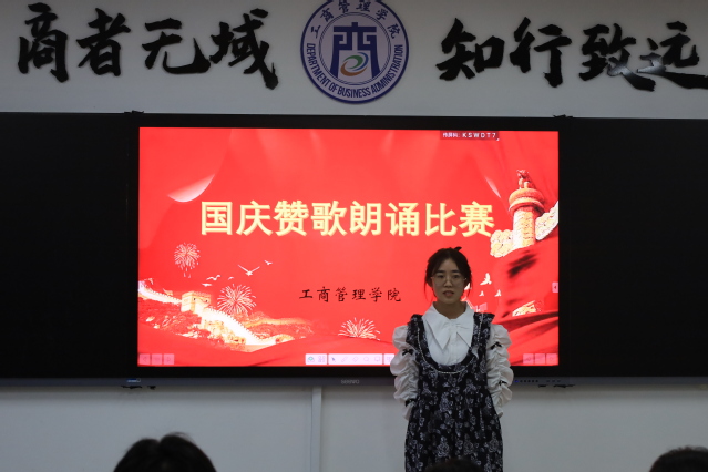 9月27日,工商管理学院开展“国庆赞歌”主题朗诵比赛,同学们热情高亢、踊跃参与,铿锵有力的诵读、满怀激情的表演,既是一场精彩的视听盛宴,又是一次深刻的爱国主义教育。活动得到了同学们的广泛参与,最终评选出一等奖1名、二等奖3名、三等奖5名。