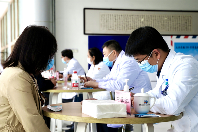 结合前期问卷调查数据和近年教职工体检反馈情况,学校邀请了青岛大学附属医院内分泌与代谢科付正菊主任、心内科郑方胜主任、皮肤科于业军主任和青岛市第三人民医院中医科马照琳主任四名岛内知名专家组成了义诊团队,来校开展义诊活动,为广大师生答疑解惑。义诊现场,前来咨询的师生络绎不绝,专家们先后为200余名师生给出了就诊建议;门诊部医生、护士为百余名师生开展了血压、血糖和血型等检测,发放了祛湿、缓解咽炎等代茶饮近百份;通过发放健康宣传单页和展架宣传形式,对师生关心的“三高”“养生”“战痘”等内容进行了宣传。