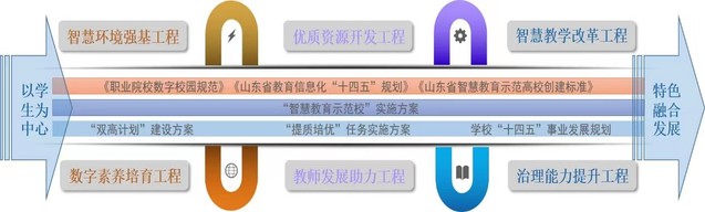 近年来,学校把信息化作为事业发展的重要抓手,与“双高计划”“提质培优行动计划”等重大项目统筹安排、统一调度,建立健全网络安全和信息化组织机构,持续夯实数字化基础设施保障体系,积极探索数据驱动的一站式服务,大力推进混合式教学改革。经过不断建设积累,信息技术与教育教学深度融合成果显著,“一网通办”平台年均办理业务流程9万余次;校本大数据中心与教育部职教智慧大脑中台实现对接;13门课程获评2022年山东省职业教育在线精品课程立项,立项数量位居全省第一;7名学生获得高职院校信息素养国赛一等奖、省赛特等奖;学校先后获评教育部“网络学习空间应用普及活动优秀学校”“职业院校数字校园建设样板校”、山东省第一批“职业院校数字校园试点单位”“网络安全工作先进单位”等称号;多个案例入选省部两级信息化案例集。