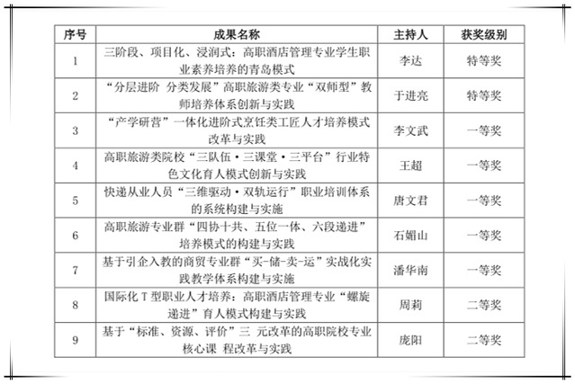 8月8日,山东省教育厅印发《关于公布2022年省级教学成果奖(职业教育类)获奖名单的通知》(鲁教职函〔2022〕35号),学校9项成果获奖。其中,特等奖2项、一等奖5项、二等奖2项,获奖级别和数量在山东省高职院校中位居前列。5项成果被推荐参加国奖评审。