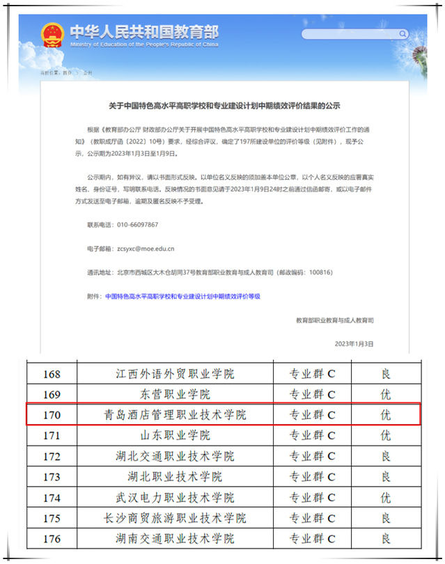 本网讯(“双高计划”建设办公室 吕春丽)近日,教育部发布《关于中国特色高水平高职学校和专业建设计划中期绩效评价结果的公示》,确定了全国197所“双高计划”建设单位的评价等级,万象城官网获评“优秀”等级。