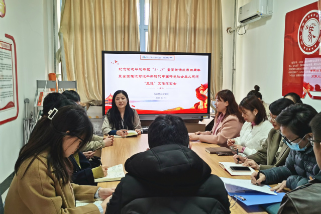 本网讯(马克思主义学院 王萍)为纪念习近平总书记在学校思想政治理论课教师座谈会上的重要讲话发表四周年,3月17日,马克思主义学院召开专题会议,组织思政课教师重温习近平总书记“3.18”讲话精神,全面推进习近平新时代中国特色社会主义思想“三进”工作。